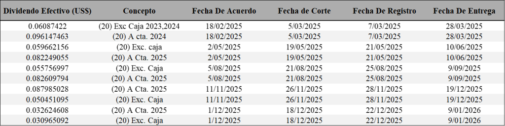 Dividendos distribuidos por FIBPRIME (2025)
